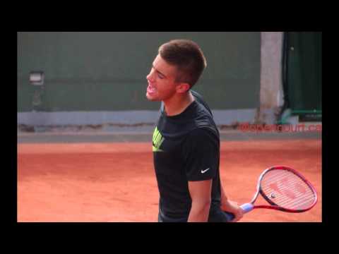 And here are some pics. Both were pretty relaxed; sitting down to get some water, Coric chatted amiably with some fans in the stands (they might have been friends of his, who knows, but still).