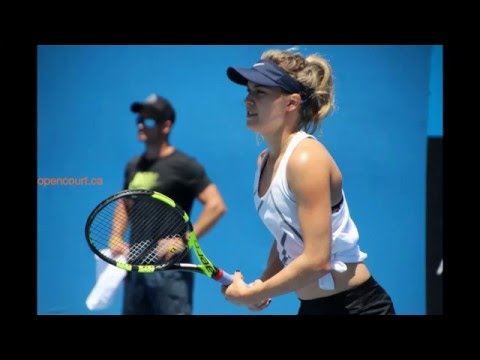Oz ’16 pics: Bouchard warms up Stephanie Myles 10 years ago MELBOURNE – Bouchard’s warmup ahead of her first-round match against Aleksandra Krunic lasted about a half-hour. Here’s what it looked like. The Genie Army were on hand.