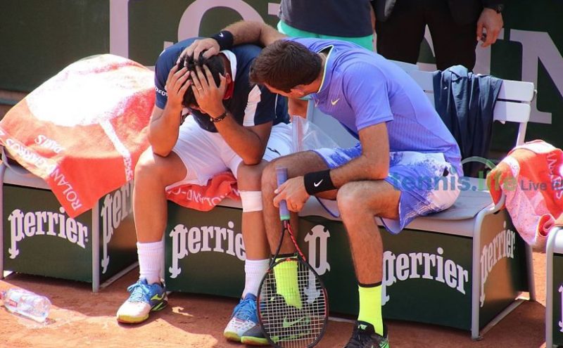The Spaniard felt the knee in the second game of the third set. Del Potro headed over to Almagro’s side of the net, but quickly returned to his own side as Almagro indicated he would try to continue.