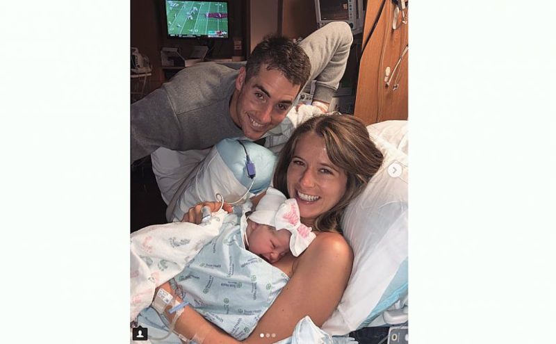 What’s not surprising? That the football game is running in the background as Isner posed for a photo with his wife Madison, and the new arrival.