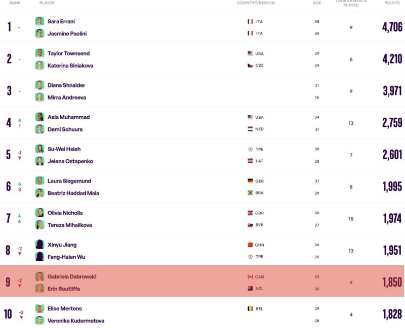 Jasmine Paolini (ITA): No. 5 ===========> No. 4 (Paolini moves back up to her career high just because Zheng dropped 50 points to fall down to No. 5. It could make a difference for her at Wimbledon; then again, potential quarterfinal opponents could include Madison Keys, Mirra Andreeva and Iga Swiatek).