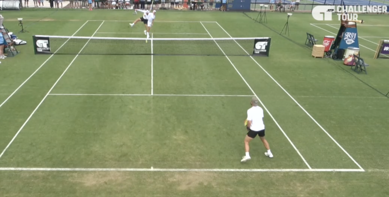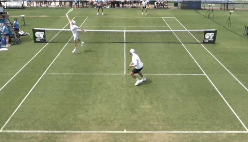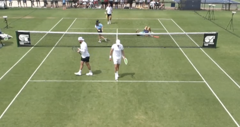 Ackman nearly kills Sock by calling dibs on a couple of overheads. They end up winning the point, but scary moments as they nearly collide, twice.