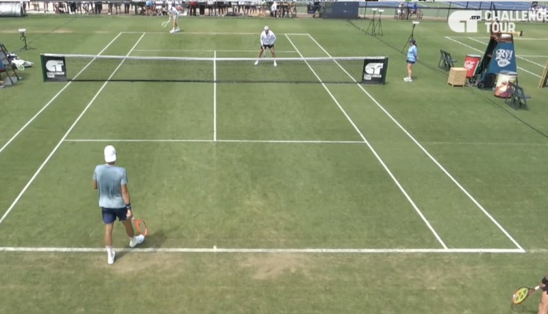 Ackman’s forehand serve return misses wide, by a couple of yards.