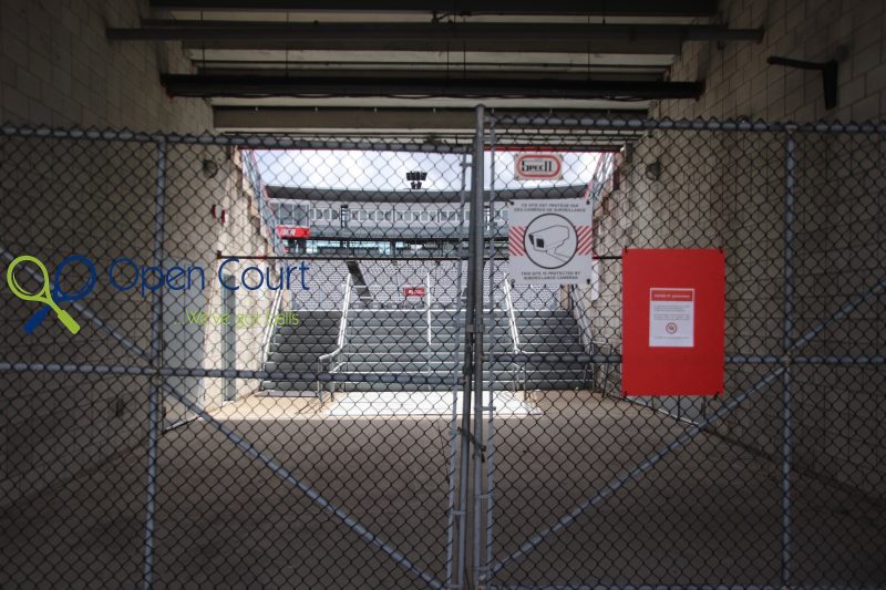Weeds were sprouting up between the concrete blocks, underneath and next to the seating. There was graffiti all over the place. Empty beer bottles. And no people – except for a few tennis players battling it out on the Grandstand court.