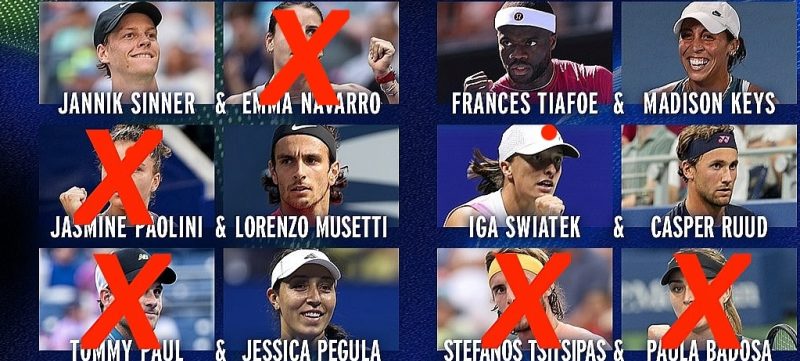 – Jasmine Paolini, who played singles and doubles in Cincinnati and played the Sunday night singles final against Iga Swiatek despite having rolled her ankle in a previous win over Coco Gauff, sent her regrets. Her partner, Lorenzo Musetti, will now play with Caty McNally in a pairing that has far less appeal. It’s entirely likely the two will meet for the first time when they take the court.