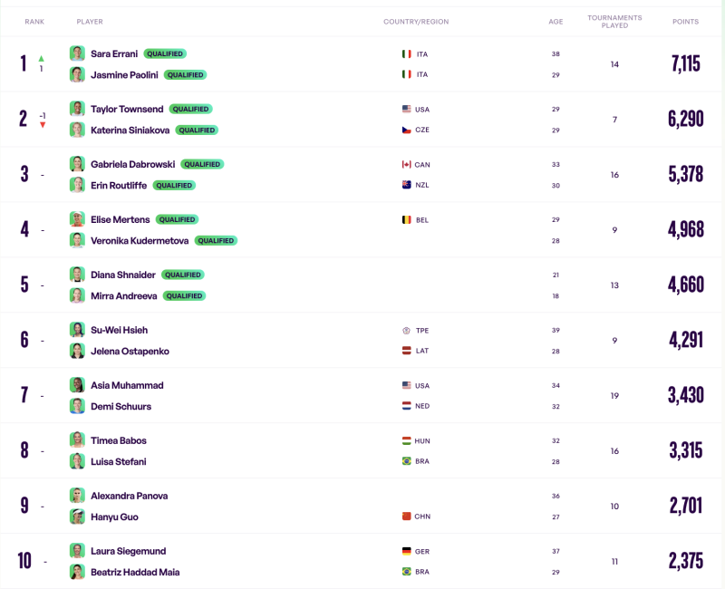 And, in addition, five singles players and five doubles teams have now officially qualified for the WTA Finals, with a few more not far away.