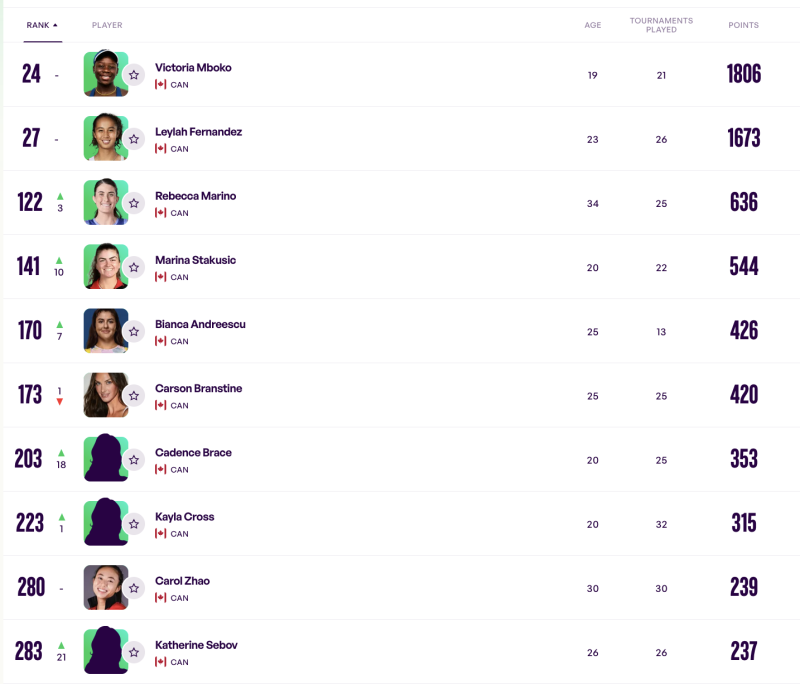 (Andreeva, the older sister of Mirra, got to a career high No. 65 almost exactly a year ago. It’s been a tough season (she’s 5-18, and hasn’t played since Wimbledon). And after dropping her points from qualifying and reaching the third round in Wuhan A year ago – icluding beating her sister – she falls out of the top 300. She is in the draw at the WTA 125 in Jinan this week).