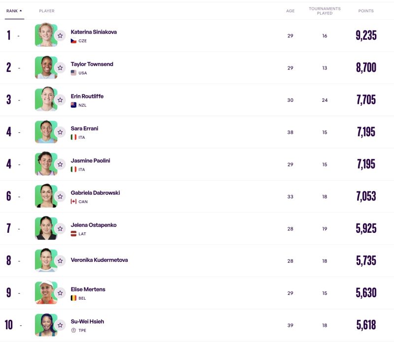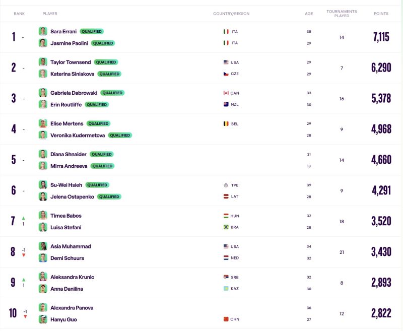 Jasmine Paolini (ITA): No. 8 ===========> No. 6 (Paolini secured her spot in the WTA Finals by making the semifinals in Ningbo, where she lost to Elena Rybakina. And so she’s out of Tokyo this week. No need).