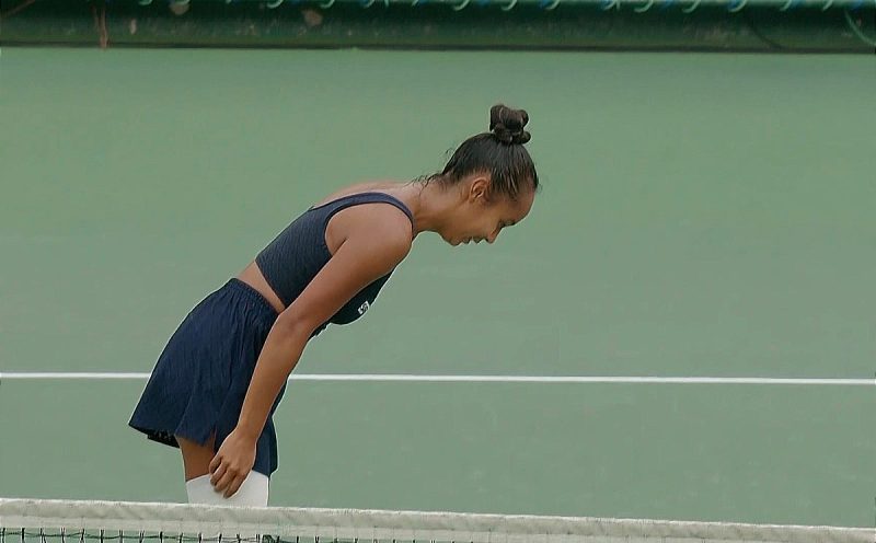 Instead of blowing kisses to the four sides of the court, Fernandez did it Janapese style – bowing.