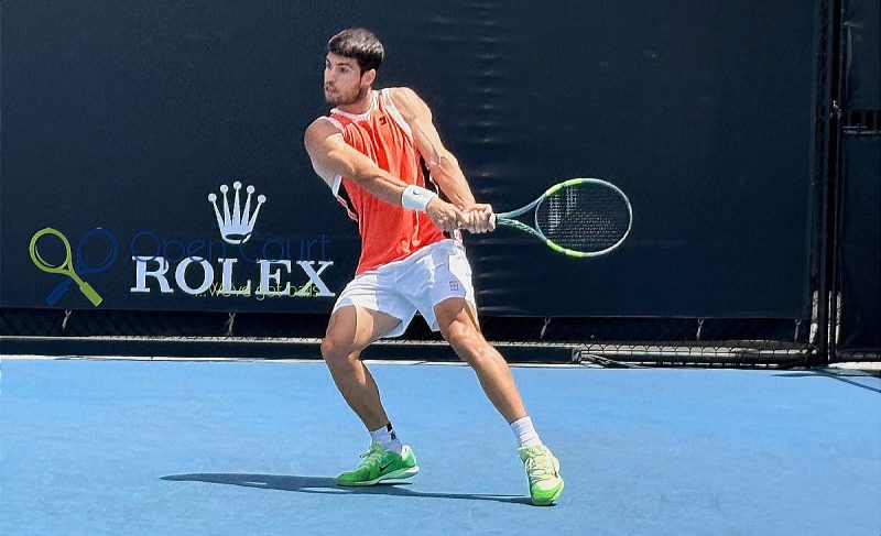 Here is Alcaraz on the practice court Thursday afternoon, getting ready.