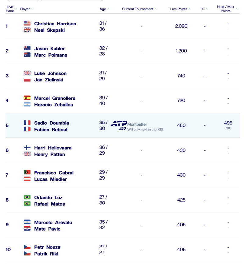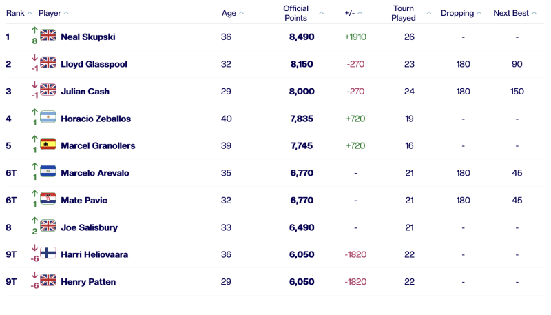 Aleksandar Kovacevic (USA): No. 56 ========> No. 81 (The American with the one-handed Backhand lost in the first round in Melbourne, and in the second round of the Quimper Challenger. So with his run from the qualifying to the final in Montpellier last year coming off before the same tournament takes place in 2026, he drops a lot).