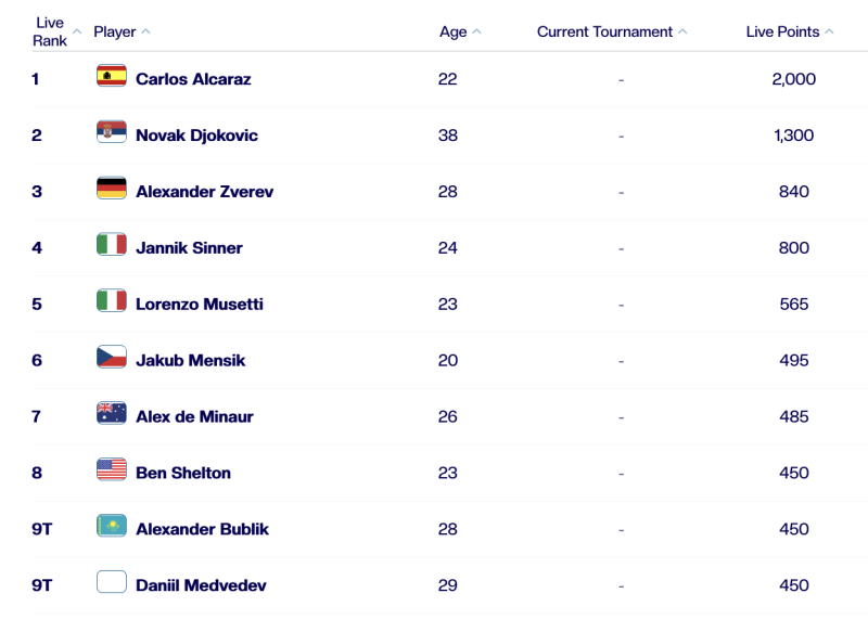 Jack Draper (GBR): No. 11 ========> No. 13 (When is the big British lefty coming back? He seems to be training. But it’s been a long road).