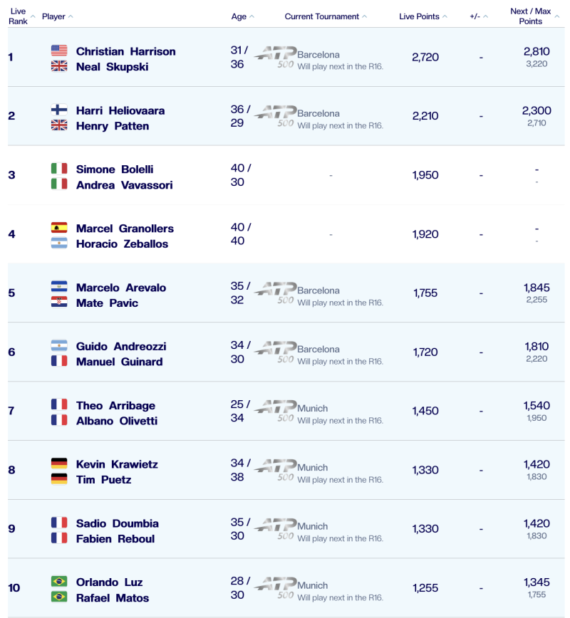 As with the women, this is the final week where players can make moves in the rankings with the goal of getting straight into Roland Garros.